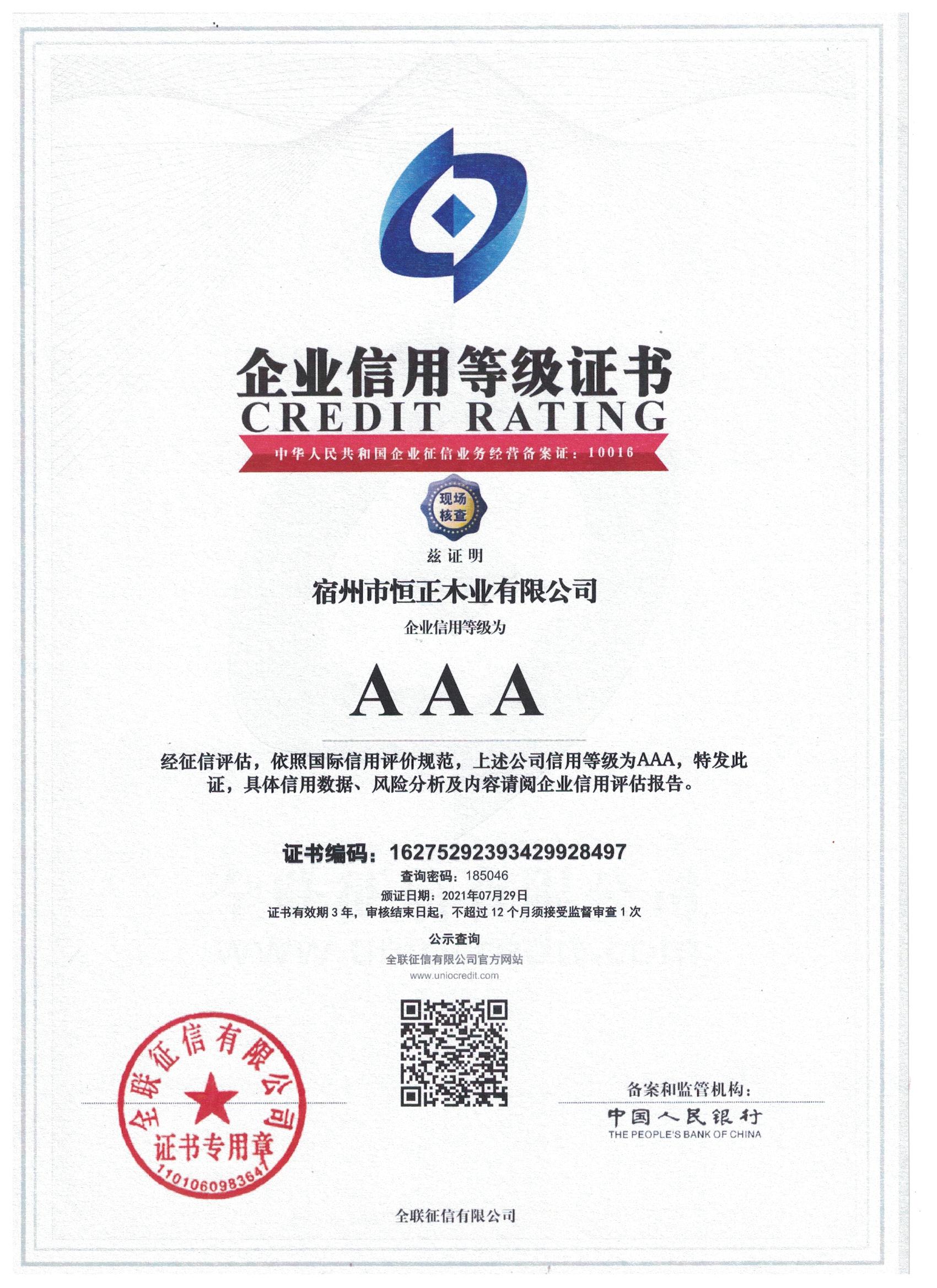 企业信用等级证书